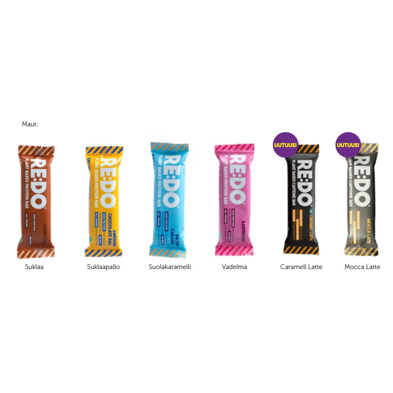 RE:DO-proteiinipatukat pakataan flowpack-kääreeseen, joka voidaan painaa kokonaan yrityksesi omalla ilmeellä. Kääreeseen voidaan lisätä esimerkiksi: